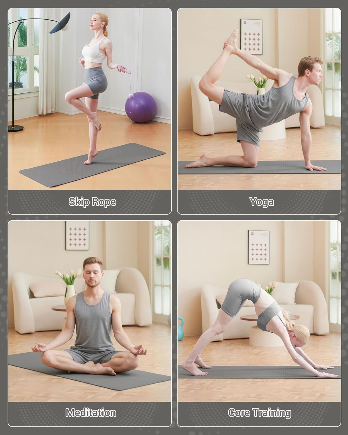 Les 6 mm offrent l’équilibre parfait entre confort articulaire et stabilité pour les postures d’équilibre. Suffisamment épais pour protéger genoux et coudes, mais pas trop pour conserver la connexion avec le sol nécessaire au yoga. Si vous avez besoin de plus d’amorti, le tapis Amazon Basics 10mm est l’alternative idéale.