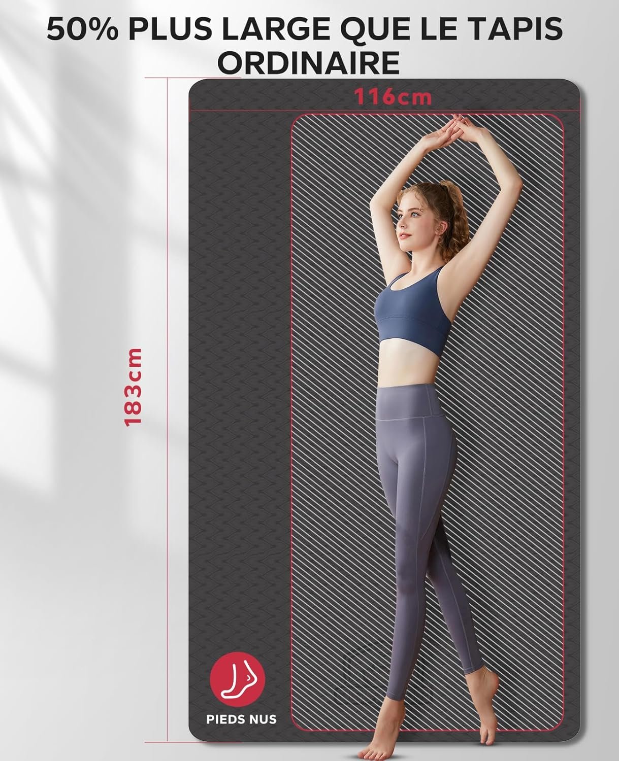 Tapis de Yoga HAPBEAR XXL Extra Large 183x122cm – Double Taille Standard